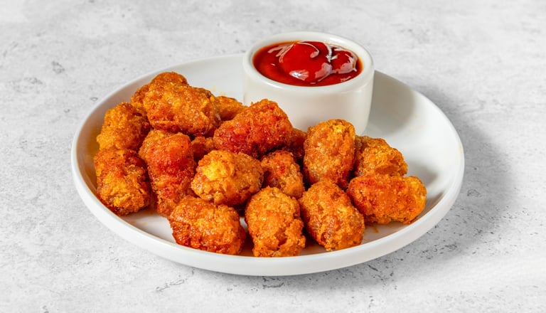 Golden, crispy, tater-tots with a sprinkle of Lawrys salt & Indian masala spices!