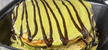 Fluffy buttermilk pancakes, with genuine vanilla bean paste, layered with Italian pistachio cream, & warm melted chocolate. Syrup on side (on request). They’re an irresistible treat to elevate any occasion.