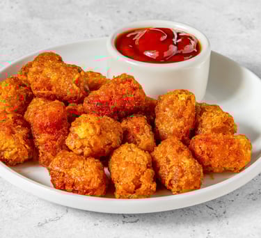 Golden, crispy, tater-tots with a sprinkle of Lawrys salt & Indian masala spices!